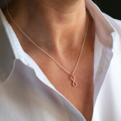 This lovely 925 Sterling Silver with Rose Gold Infinity Charm Necklace adds a touch of elegance to any outfit. Infinity symbolises eternity, empowerment and ever lasting love. Great work on its own or perfect matched with other pieces in our Infinity range.